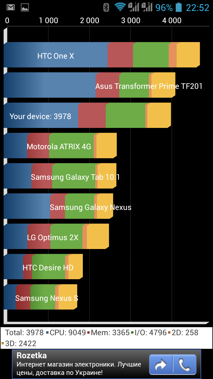 В основе 4-ядерный процессор Mediatek MT6589 с тактовой частотой 1,2 ГГц. Кроме того, «на борту» аппарата 1 ГБ оперативной и графика Power VR SGX 544MP. Такого сочетания вполне достаточно, как для просмотра фильма с разрешением Full HD, так и для производительных игр.