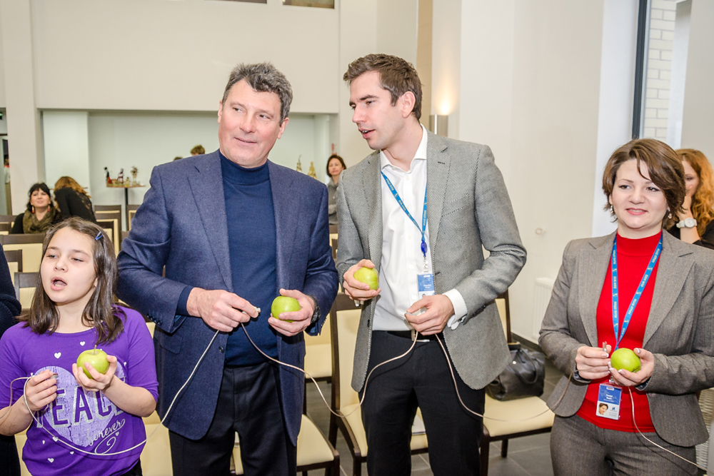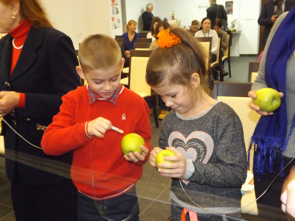Во время презентации второго этапа экологического проекта юные экологи продемонстрировали в действии все три номинации конкурса: открыли экспозицию «ЭКОзима-2015» как первый проект в номинации «ЭКОдизайн»; школьники провели настоящий аква-перфоманс в технике эбру и вместе создали символ проекта для номинации «ЭКОкреатив». Необычный воркшоп стал мастерской для поиска настоящих «ЭКОинноваций» — участники праздника, взяв в руки яблоки и электропровода с пластиной, совместно добыли электроэнергию, чтобы зажечь светильник в центре зала!