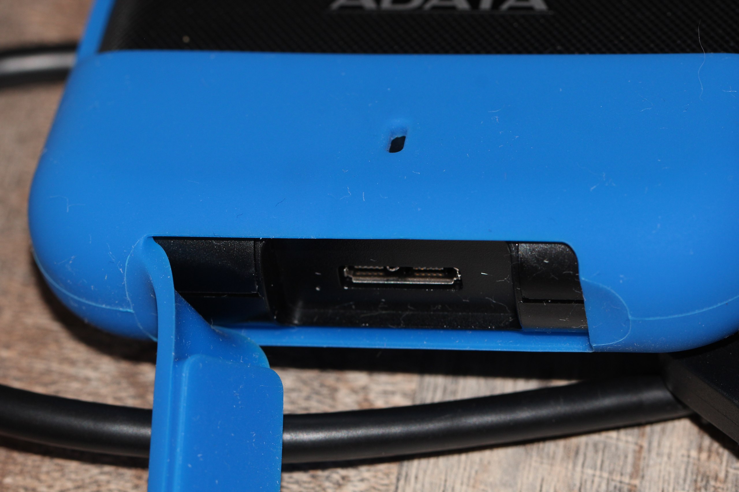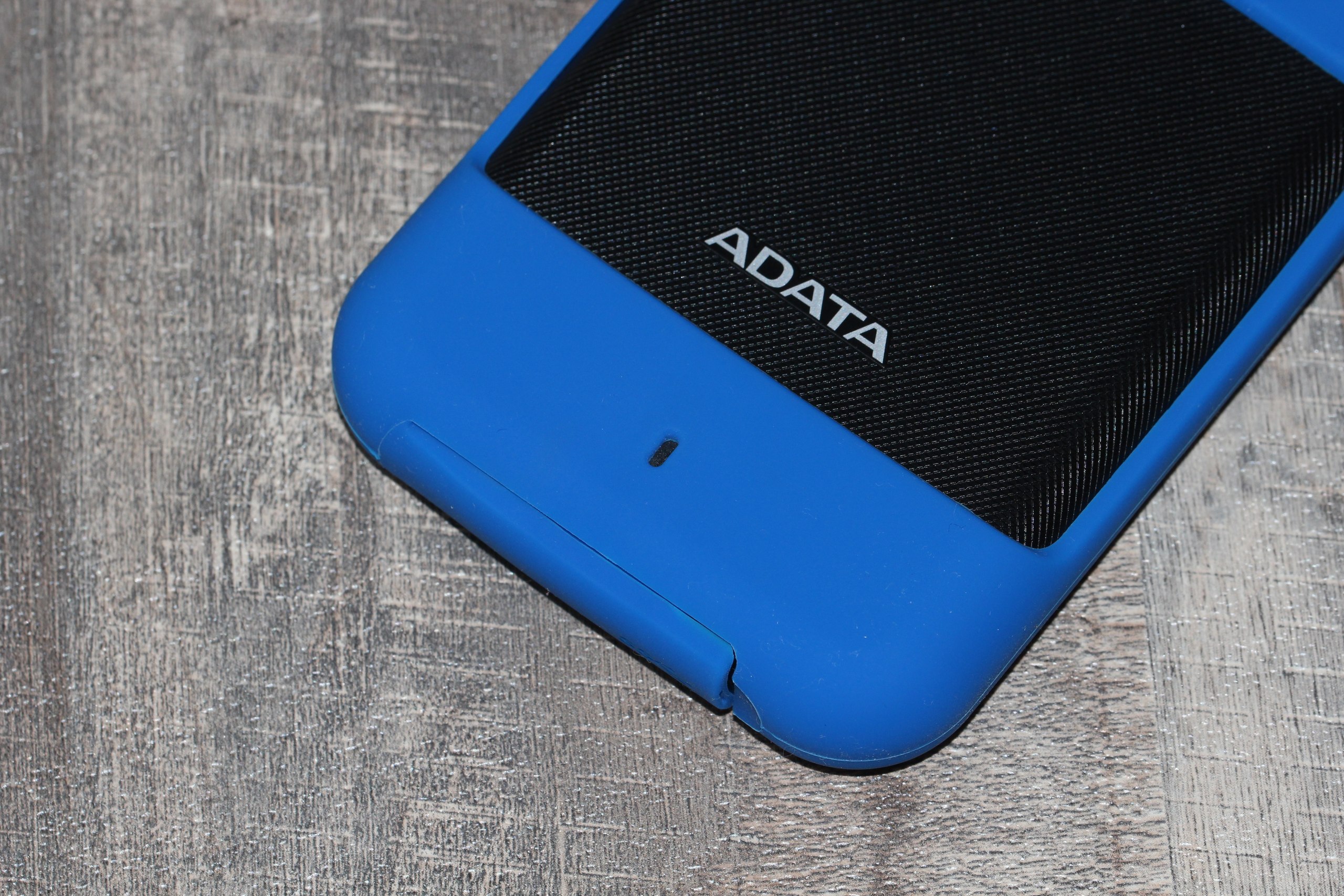 Наиболее интересным элементом на передней панели ADATA HD700 является светодиод, сигнализирующий о разных процессах данной с позволения говоря, «системы». Так, если подсветка постоянная и она синего цвета – это значит, что на накопитель подается питание. Если же этот синий свет начинает мигать – с носителем ведется работа. Мигание красным цветом светодиода «подскажет» пользователю о том, что с накопителем какие-то проблемы и необходима диагностика, которая, к слову, в большинстве случаев выполняется самым же пользователем. Ну, и, наконец, постоянное «горение» красным светом свидетельствует об активации акселерометрической виброзащиты. На практике это значит, что система паркует головки накопителя, тем, самым, препятствуя повреждению данных при сильных встрясках или падении.