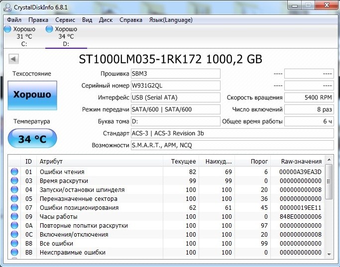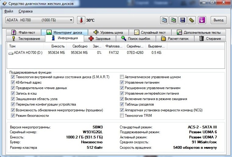 Посредством программ HD Tune Pro и Crystal Disk Info мне удалось выяснить о нем следующую информацию: