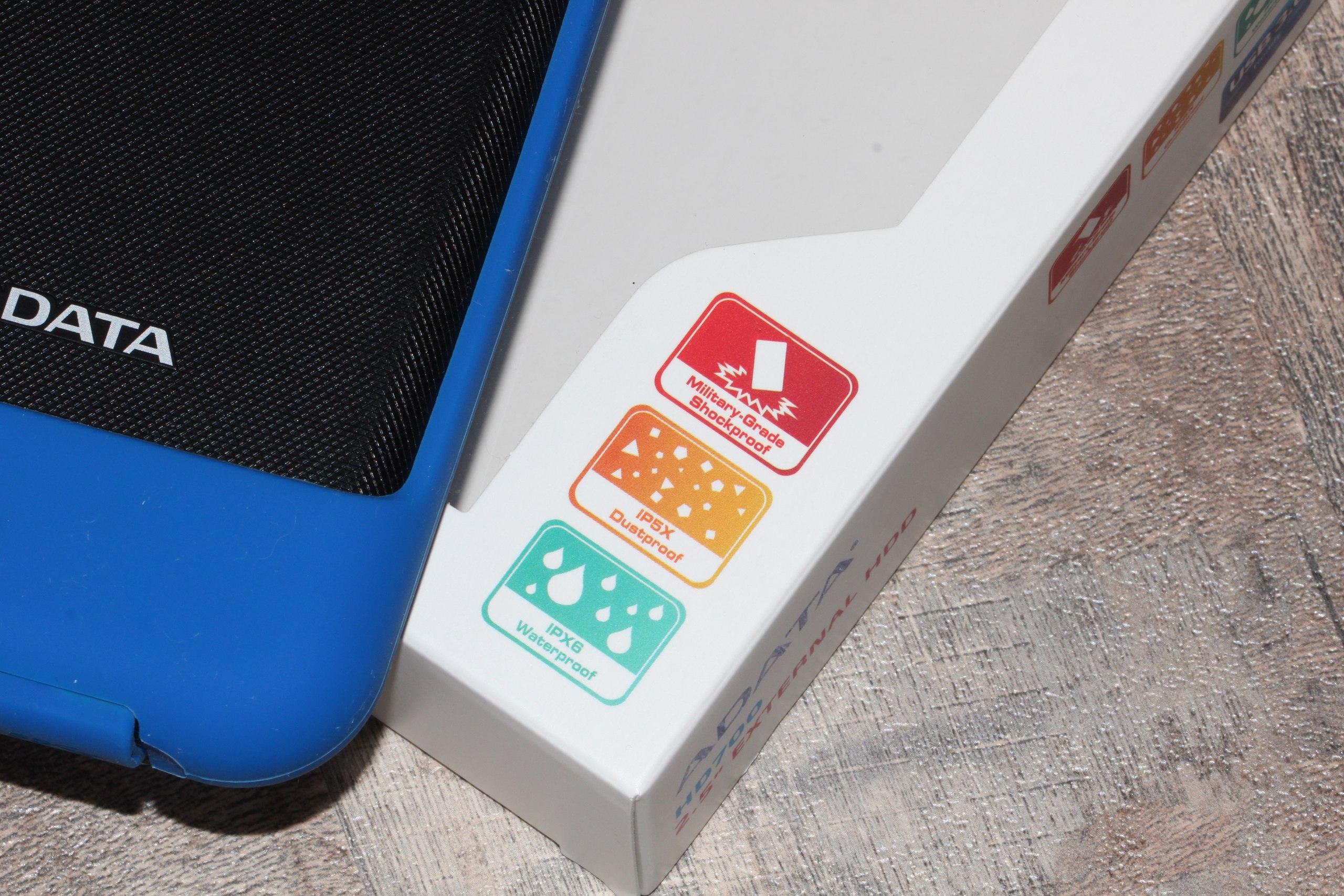 Итак, выше мы уже разобрались — корпус ADATA HD700 защищен сразу по трем стандартам – американскому военному MIL-STD-810G 516.6 (защита от падений и встрясок), IP56 (от пыли и воды, в том числе морской), IPX6 (от струй воды со всех сторон). Сложно не согласится с тем, что такое сочетание выглядит впечатляюще.