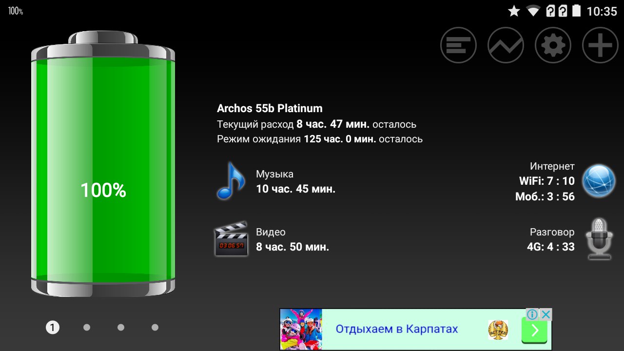 Для того чтобы протестировать автономность аккумулятора, я воспользовался популярным тестером «Батарея HD». Полученные результаты перед вами.