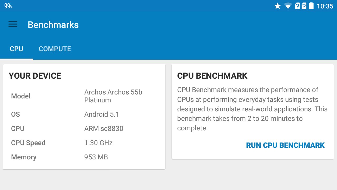 В качестве аппаратной платформы в ARCHOS 55b Platinum задействован 4-ядерный Spreadtrum SC7731G, тактовая частота которого 1,3 ГГц. «В связке» здесь графика ARM Mali-400 MP4 и 1 ГБ оперативной памяти.