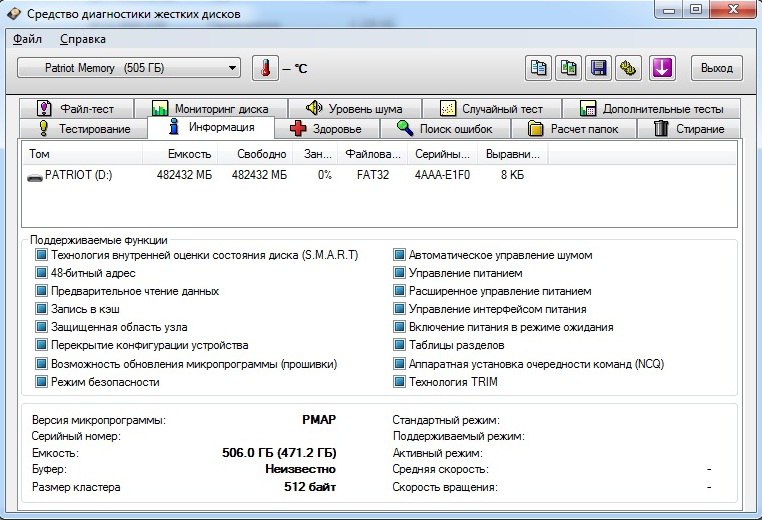 Другая утилита — HD Tune Pro «поведала» о версии микропрограммы и пр. особенностях.