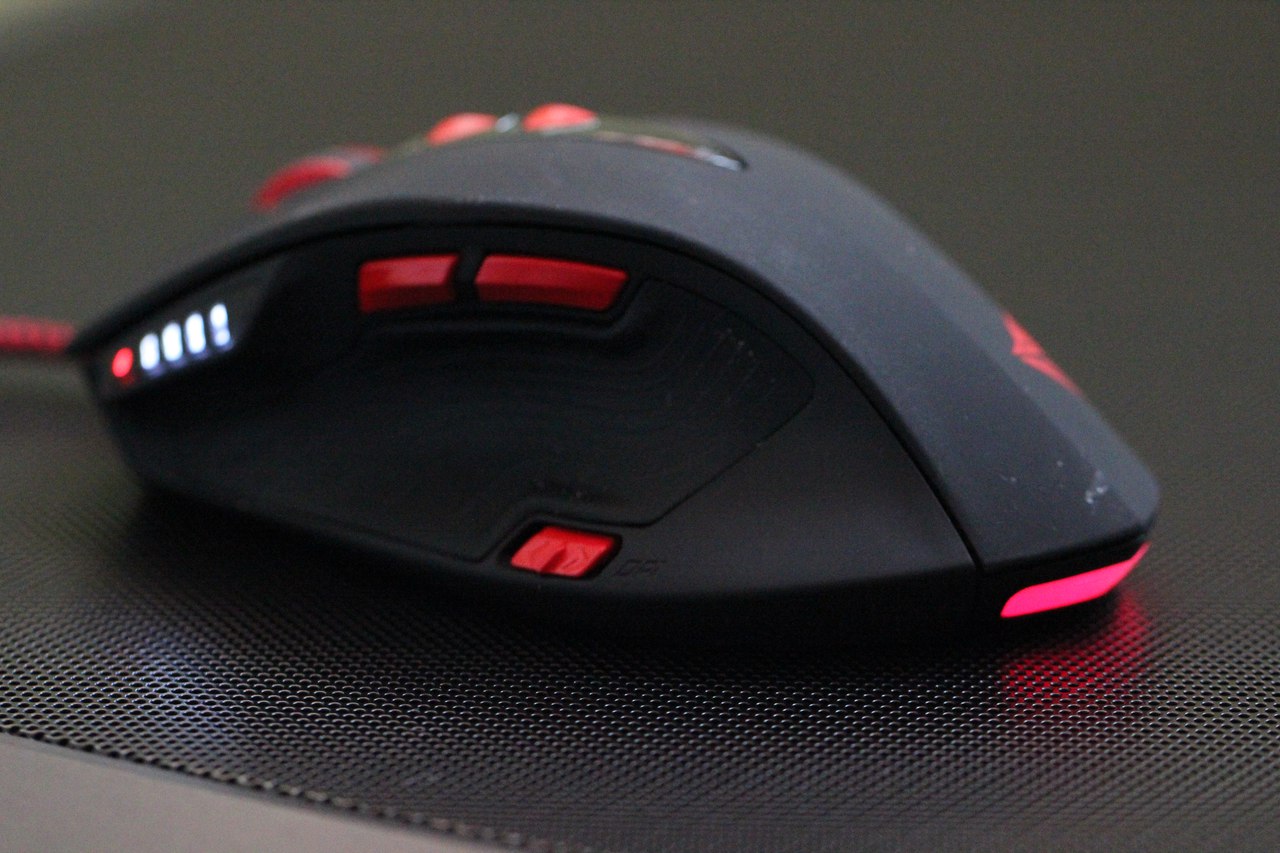 Левая боковая грань примечательна программируемыми кнопками «Forward» и «Back» + миниатюрным переключателем dpi. Кроме того, немного в стороне легко заметить световой индикатор в виде шкалы, сигнализирующий о переключении разрешения.