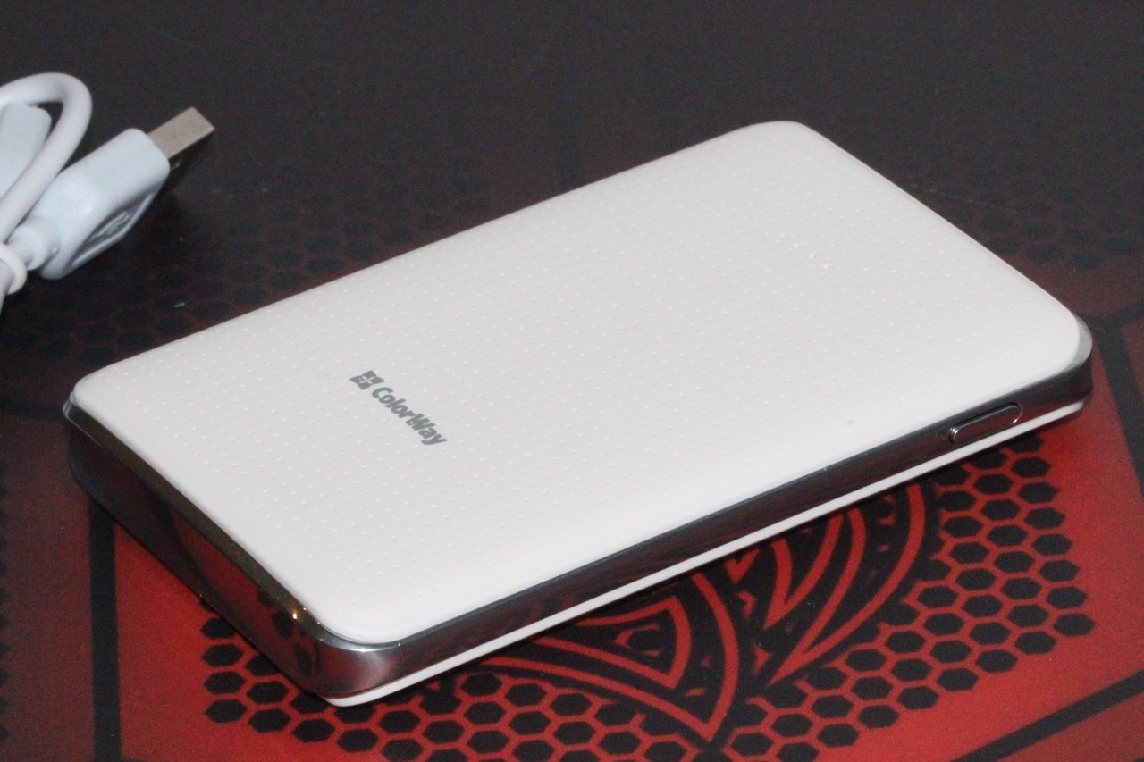 Внешность ColorWay CW-PB050LPA2W – также сильная сторона устройства, и спасибо здесь стоит говорить узору «под кожу» на передней части корпуса, массивной, условно говоря, «металлической» окантовке с характерным данному материалу корпуса оттенком по периметру и едва ли не хирургическую подгонку всех этих деталей между собой.