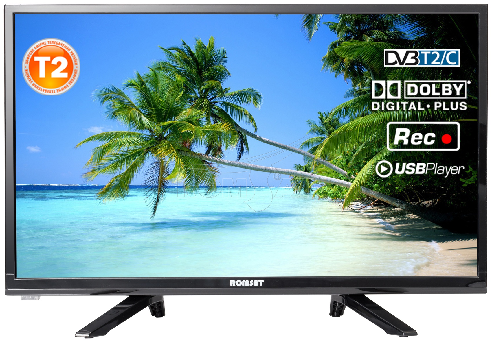 Romsat 24HMT16052T2 имеет аналоговый тюнер, а так же цифровой DVB-T/T2/С, позволяющий просматривать бесплатное цифровое телевидение Т2, кабельное телевидение. Функции PVR и Time Shift помогут записать любимые телепрограммы на USB-накопитель, ставить на паузу и перематывать телевизионный эфир. В телевизор встроен полноценный USB медиа-плеер для просмотра видео и фото большинства распространенных форматов (в том числе MKV.) с внешних USB-накопителей. Удобный телегид на 7 дней запишет ваши любимые программы, напомнит об их выходе в эфир.