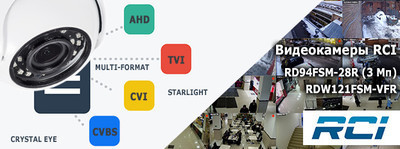Доступны для заказа новые видеокамеры RCI: мультиформатная Full HD камера RDW121FSM-VFR с функцией Starlight и AHD 3 Мп камера RD94FSM-28R высокой четкости.