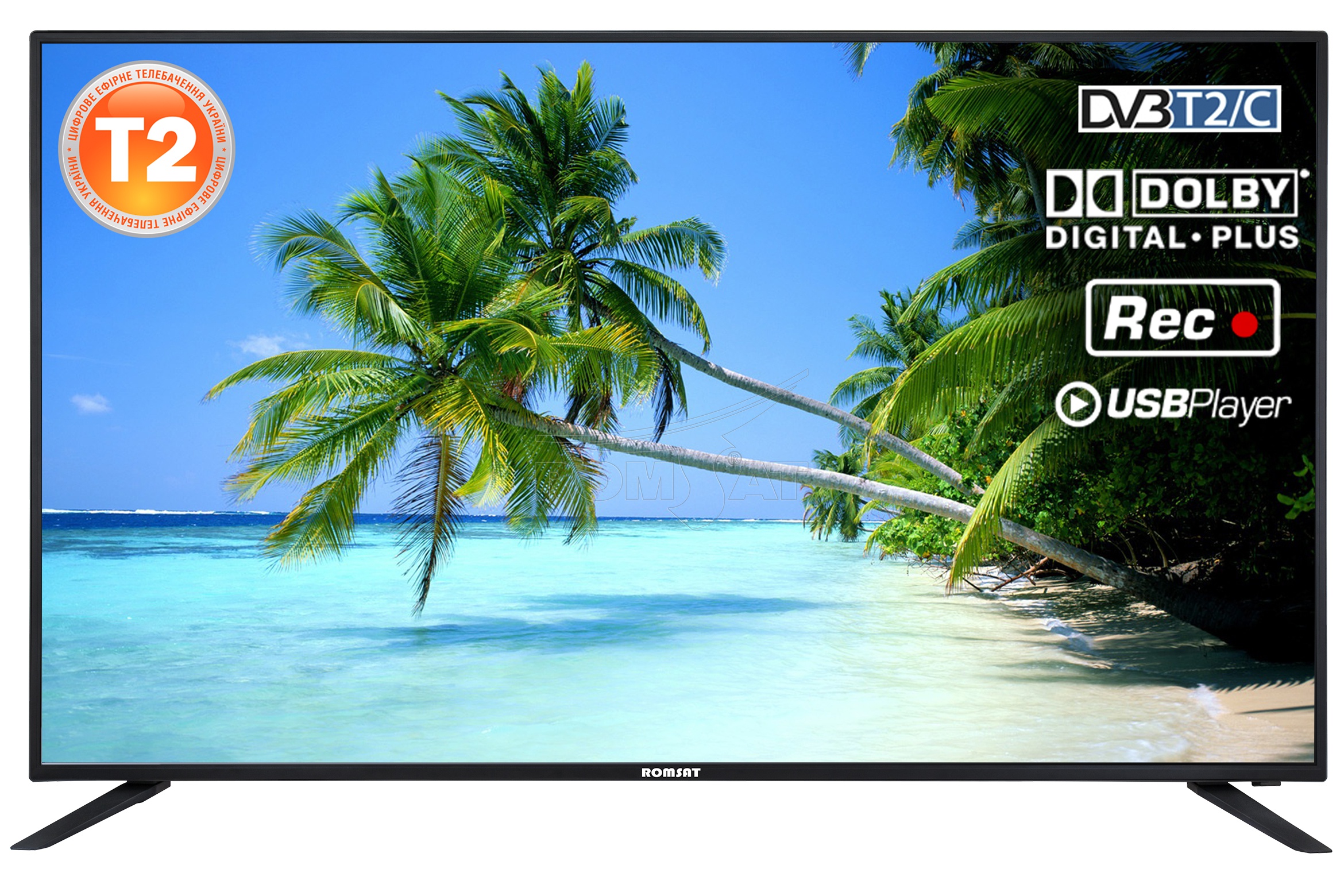 Функциональные особенности Телевизор Romsat 43FGA16180T2 имеет аналоговый тюнер, а так же цифровой DVB-T/T2/С, позволяющий просматривать бесплатное цифровое телевидение Т2, кабельное телевидение. Функции PVR и Time Shift помогут записать любимые телепрограммы на USB-накопитель, ставить на паузу и перематывать телевизионный эфир. В телевизор встроен полноценный USB медиа-плеер для просмотра видео и фото большинства распространенных форматов (в том числе MKV.) с внешних USB-накопителей.