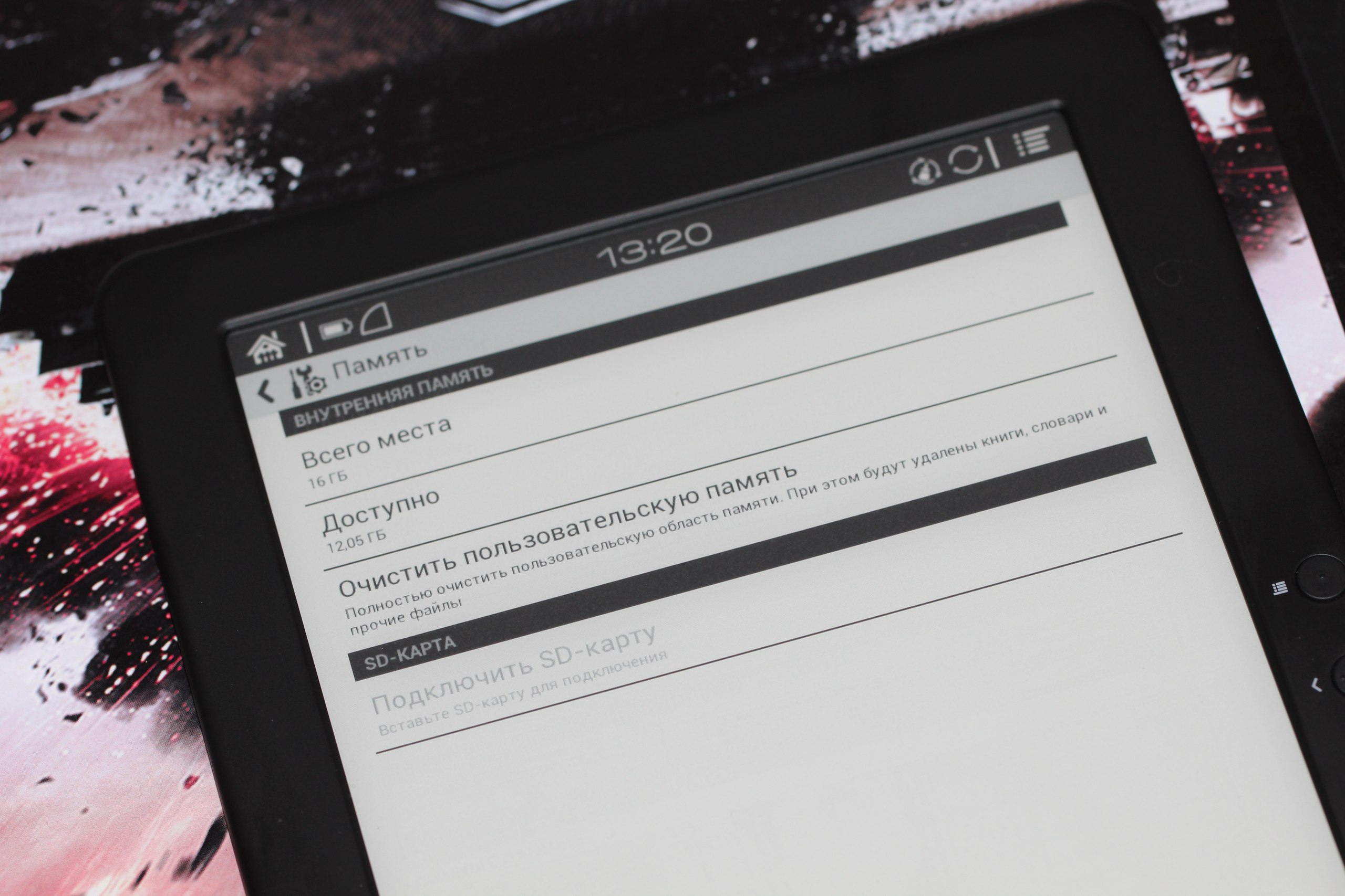 С 16 ГБ официально заявленной встроенной памяти «на борту» ONYX BOOX Prometheus 2 чуть меньше 4ГБ изначально «зарезервировано» операционной системой и различными техническими файлами.