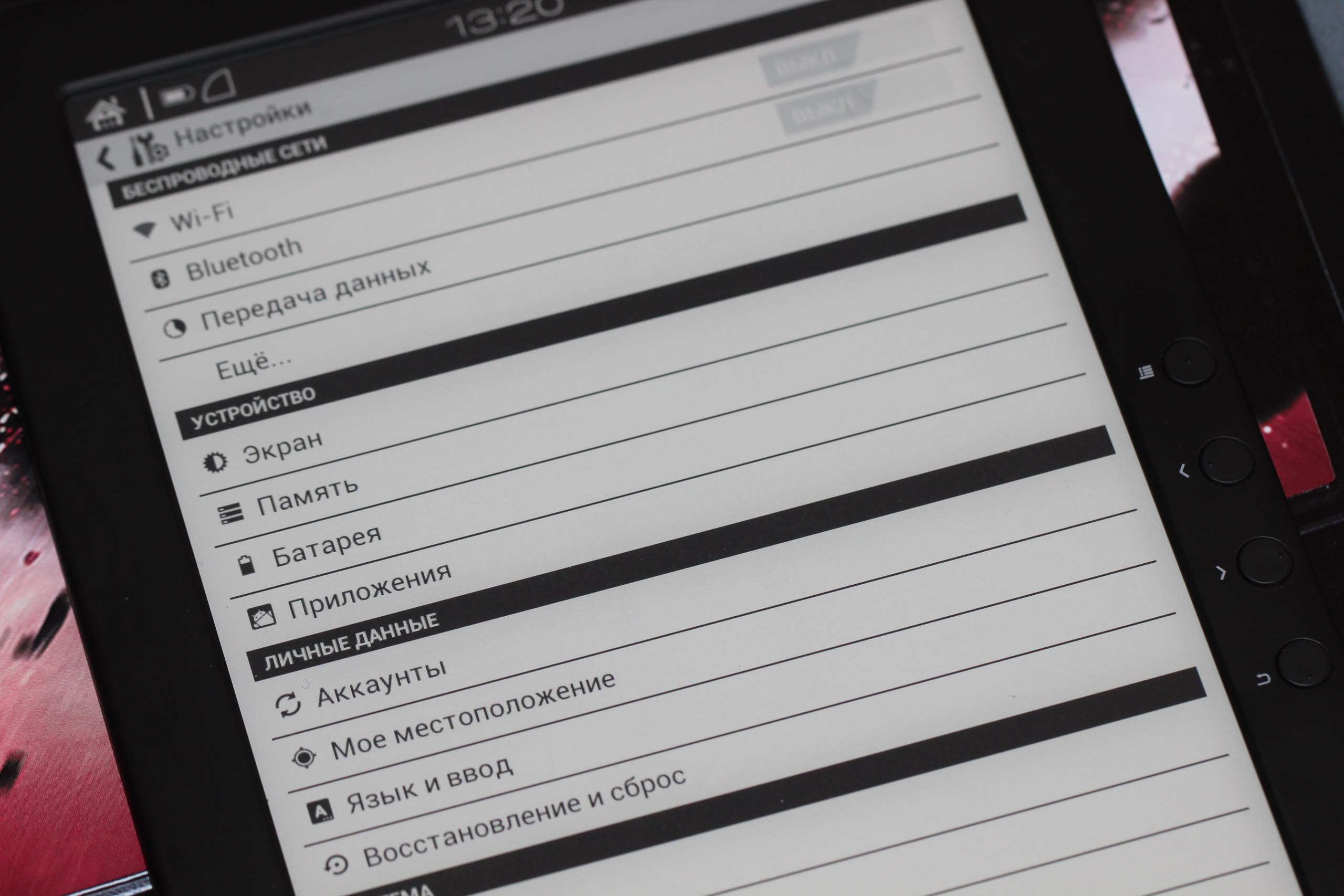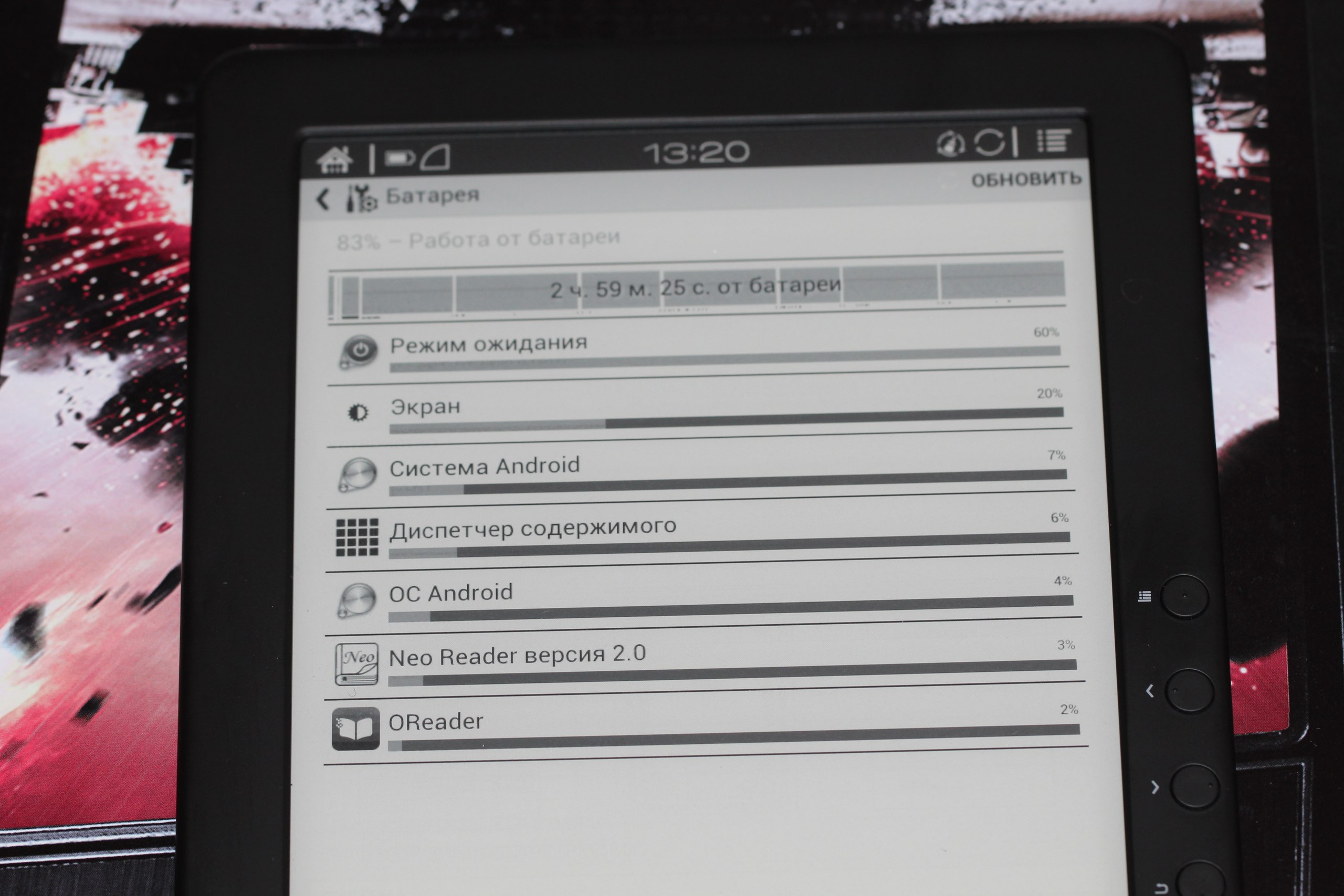 На деле одного полного его заряда достаточно на месяц чтения с выключенными беспроводными модулями и подсветкой, либо же до двух недель с включенным Wi-Fi и подсветкой, «накрученной» не менее чем на треть.