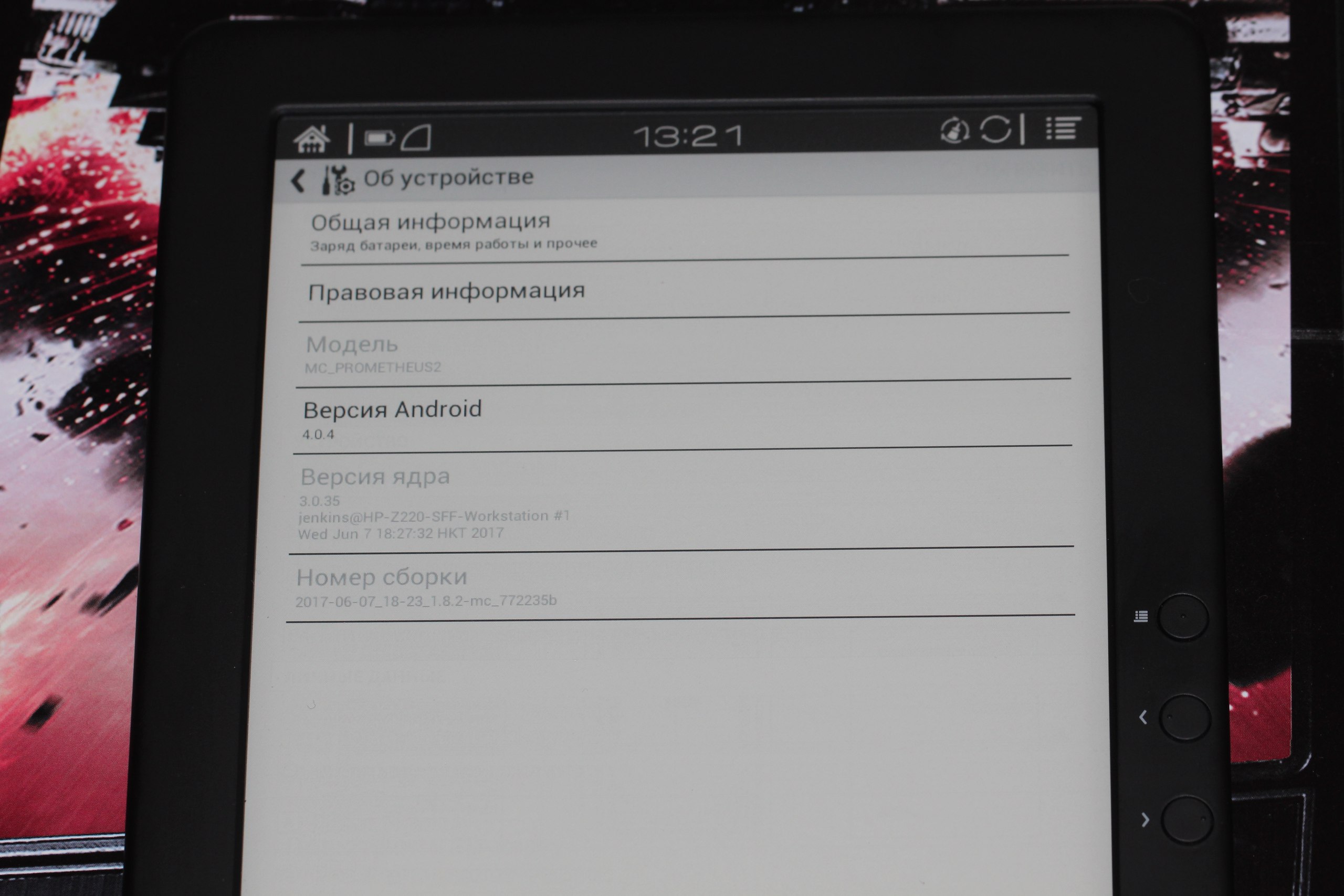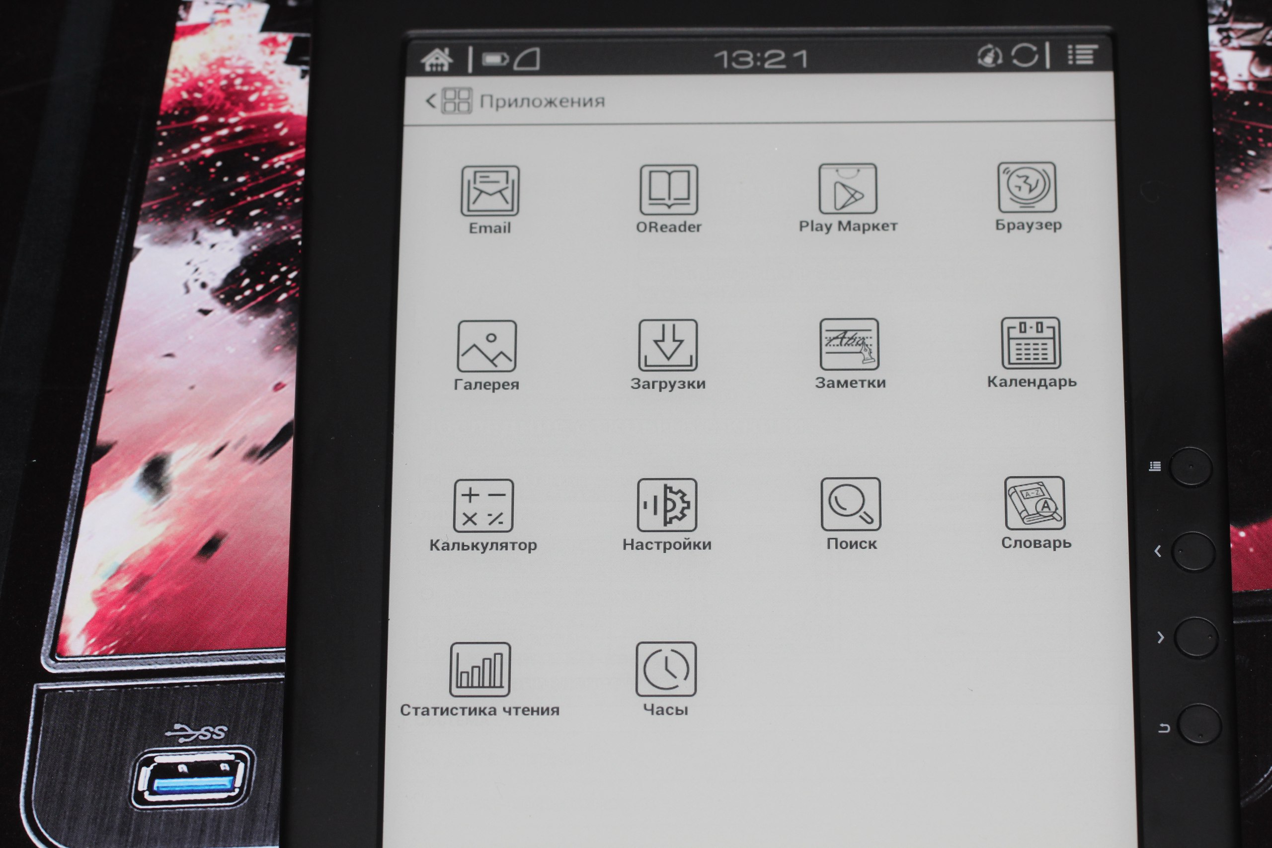Работает ридер под управлением Android 4.0.4 с доступом к магазину приложений Google Play Market.
