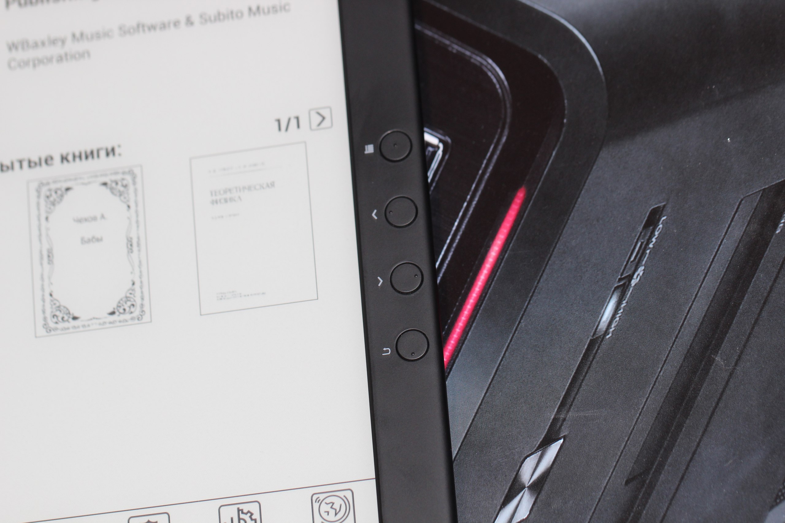 Поскольку дисплей в ONYX BOOX Prometheus 2 сенсорный, логично, что основное управление ридером возложено именно на него. Вместе с тем, некоторое количество функций производитель «закрепил» и за имеющимися здесь аппаратными кнопками, которые сосредоточены по правую руку пользователя. Самая верхняя «вызывает» контекстное меню в отдельных приложениях. Две следующие клавиши – перелистывание страниц той или иной книги во время чтения, или же листание каталогов. Ну и четвертая по счету кнопка – «Назад». К слову, она же «вызывает» одно из двух контекстных подменю в режиме чтения, где пользователь может перемотать вперед или же выйти из редактора.