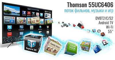 Многофункциональный телевизор Thomson 55UC6406 с диагональю экрана 55 дюймов и Android TV уже в продаже.