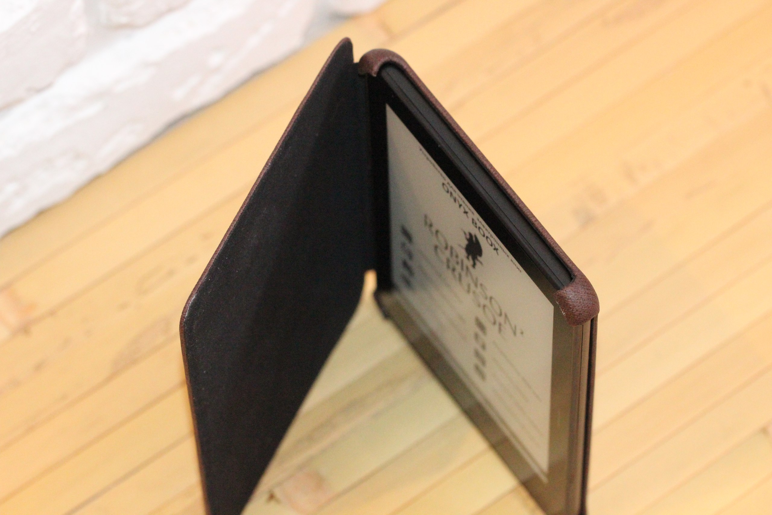 В случае с корпусом ONYX BOOX Robinson Crusoe 2 на лицо использование премиальных материалов. Так, к примеру, сзади и на «боковушках» — алюминиево-магниевый сплав. А вот дисплей уже прикрывает защитное стекло ASAHI. Есть, впрочем, и немного пластика – та же окантовка экрана или вставка на нижнем торце. Однако если вы будете пользоваться устройством в чехле, а я бы рекомендовал именно так и делать, этот материал «слабым звеном» уж точно не окажется, поскольку чехол перекрывает любые возможные воздействия на него источников окружающей среды.