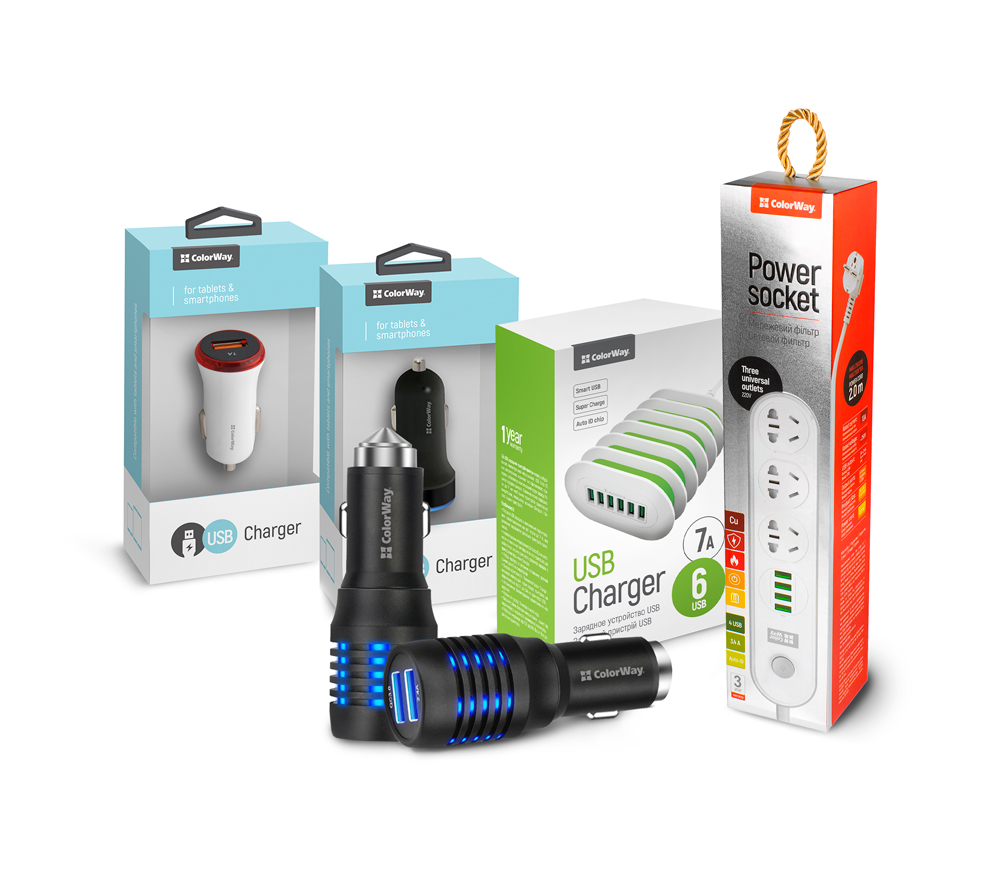 В январе 2018 года бренд ColorWay расширил аксессуарную группу новыми продуктами, добавив категории: сетевые фильтры и универсальные зарядные устройства.