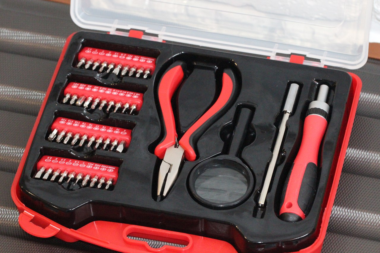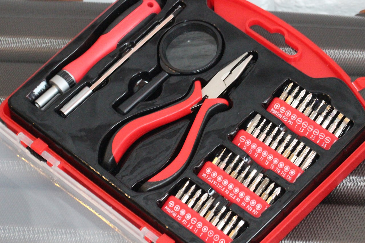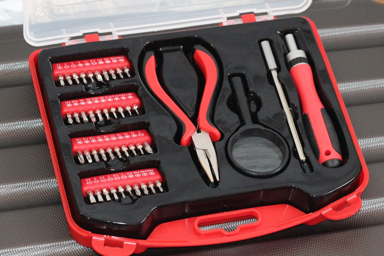 Что ж, таким образом, перед нами компактный набор инструментов для работы с различными мелкими приборами и деталями. Удобная отвертка, есть удлинитель, лупа для людей с ослабленным зрением либо же для работы с очень мелкими компонентами плюс огромное количество бит, едва ли не под все существующие крепежи.