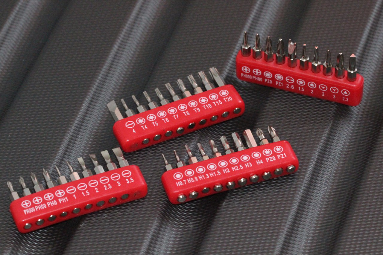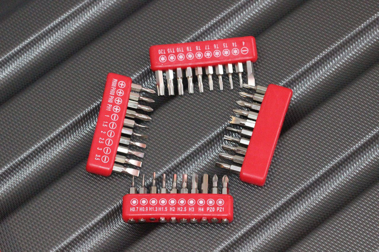 Больше всего места занимает 40 сменных бит. Все они размещены на 4 уплотнителях, и под каждой из которых своя сноска-подпись. Это удобно.