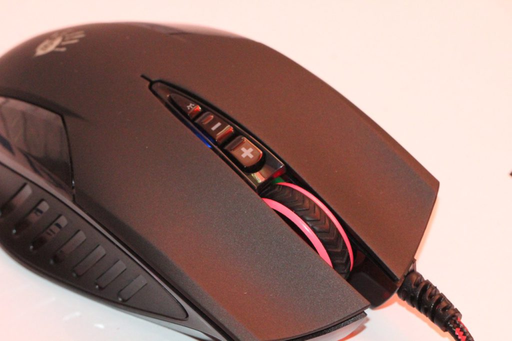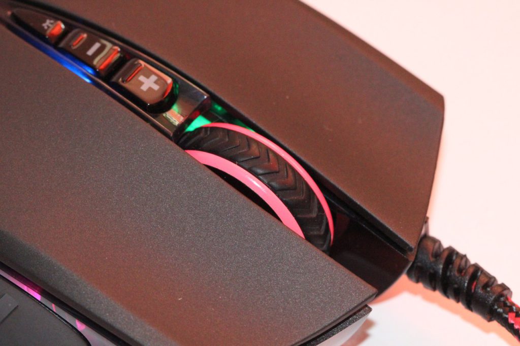 Каких-либо «тонких» настроек ее нет – можно лишь регулировать яркость подсветки и выключать/включать ее. Кстати, сама подсветка колесика упомянутой кнопкой не отключается – здесь все «завязано» на переключении DPI, с изменением разрешения которого меняется и цвет подсветки колесика либо же она отключается совсем.