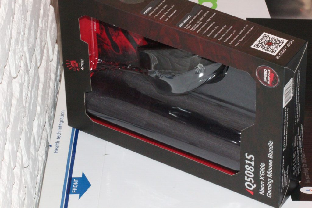 Все перечисленное помещено в картонную коробку средних размеров. Дизайн упаковки я бы назвал по-своему симпатичным. Конечно же, он больше информационный. Вместе с тем, спереди предусмотрено большое блистерное окно, через которое можно вполне неплохо (хотя и в не мелочах) изучить дизайн и коврика, и манипулятора, не вынимая их при этом из упаковки.