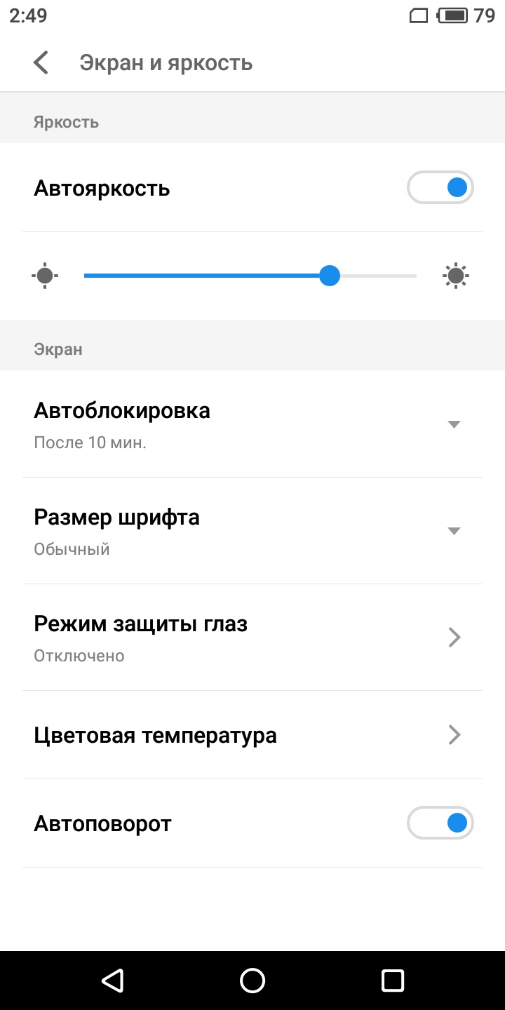Что обратило мое внимание в меню настроек, так это возможность подстройки цветовой температуры по специальной шкале от холодной к теплой и наоборот. Можно также задействовать специальный режим защиты зрения, что удобно, если работаете с «трубкой» продолжительное время, как говорят, «без перерыва на кофе». А в остальном все классически: регулировка подсветки двумя вариантами, настройка шрифтов, работа с тайм-аутами и пр.