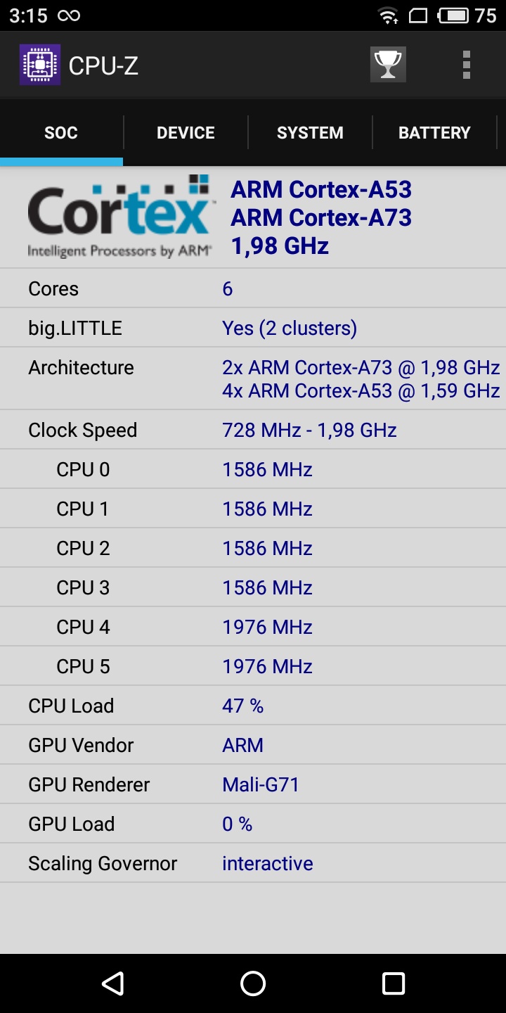 «Сердцем» системы является 6-ядерный чип Exynos 7872, тактовая частота которого до 2 ГГц. Кроме того, здесь 3 ГБ оперативной памяти и графика Mali-G71.