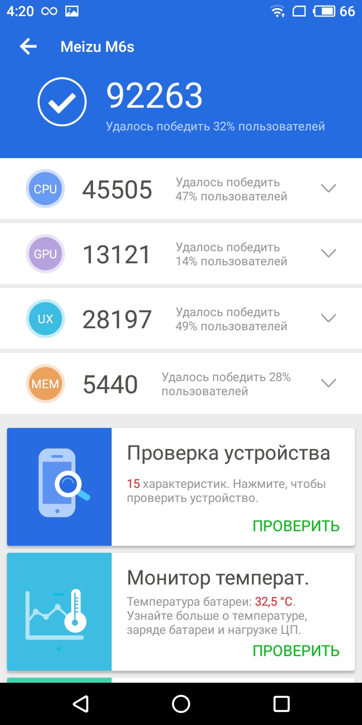 Работает смартфон под управлением Android 7.0, поверх которой фирменная оболочка производителя терминала – Flyme 6.2.