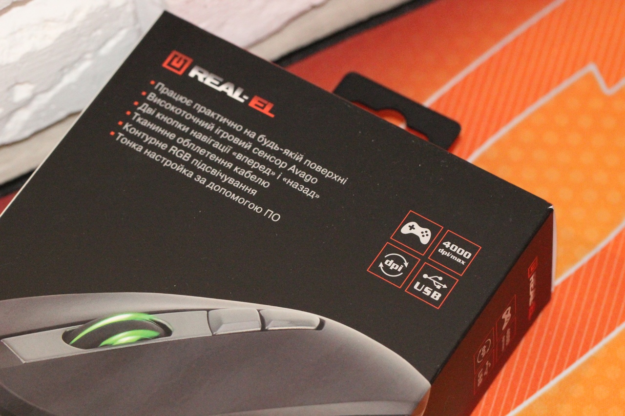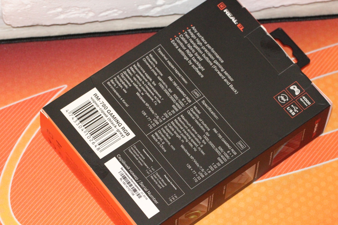 Мне понравилось то, как производитель подошел к декору коробки под REAL-EL RM-780 Gaming – выглядит очень стильно. Осмотрев ее, и не скажешь, что внутри игровой манипулятор, стоимостью менее $20.