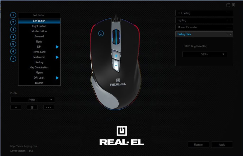Среди его особенностей я бы отметил возможность довольно широкого перепрограммирования всех кнопок, тонкие настройки подсветки, создание четырех игровых профилей, регулировку уровня dpi и мн. др. Хотя сам по себе интерфейс и выглядит несколько перегруженным, но разобраться в нем легко, даже если вы ранее не имели дел с такого рода софтом.