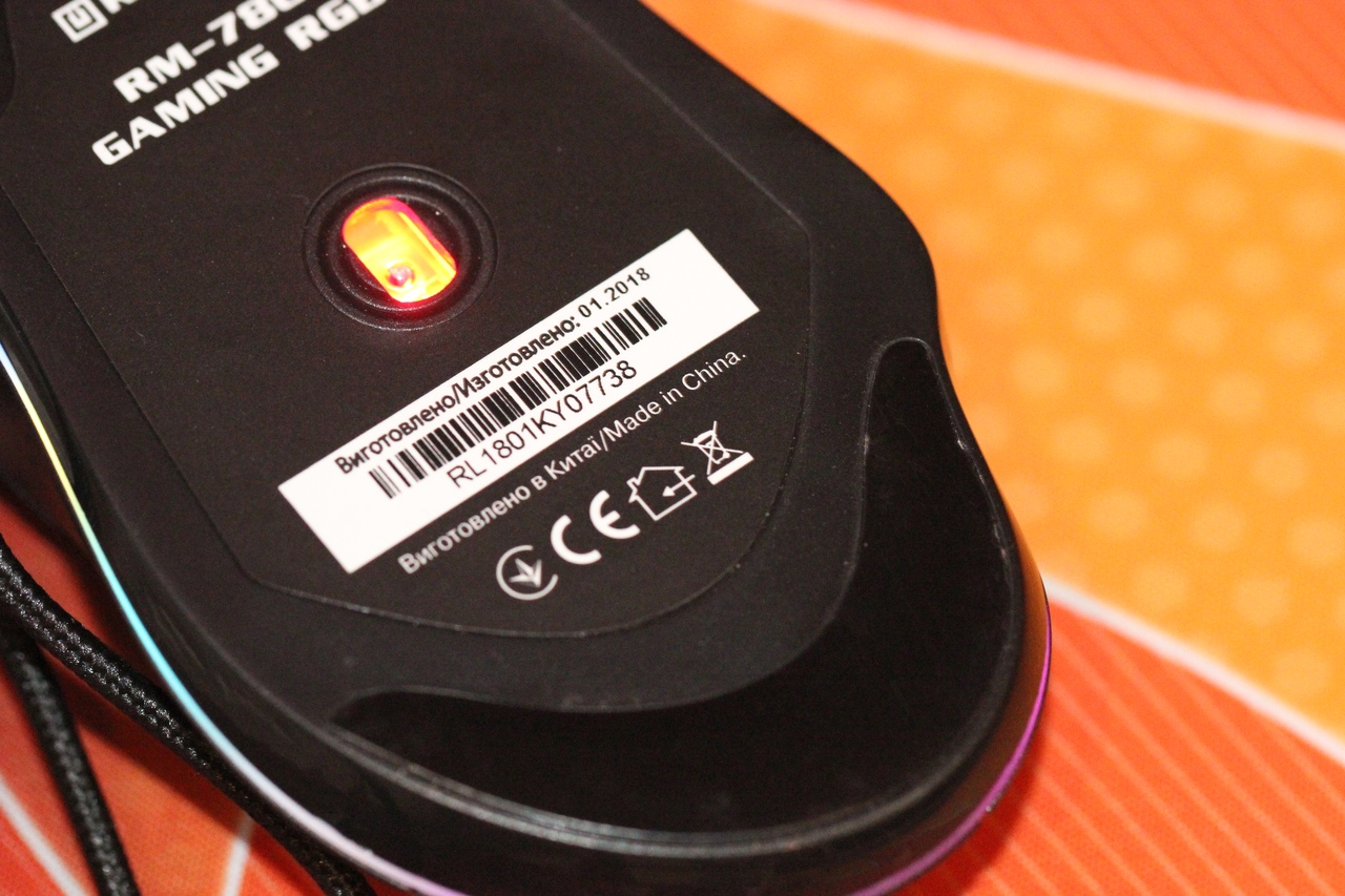 Реализованную RGB-подсветку у RM-780 Gaming производитель назвал контурной. Ничего необычного в таком названии нет, ведь свет здесь рассеивается лишь через тонкую вставку-контур молочного оттенка по периметру корпуса. Кроме того, подсветкой наделено и колесико прокрутки.