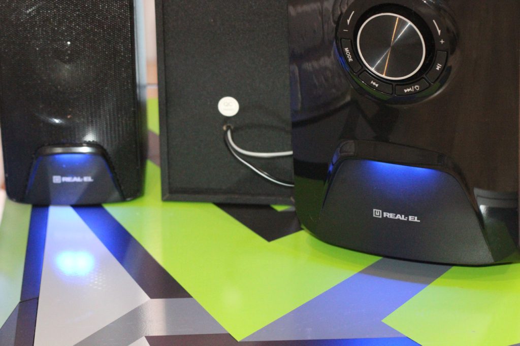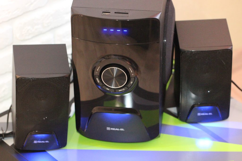 Внешность REAL-EL M-570 подойдет едва ли не под любой интерьер, как офисного помещения, так и домашней комнаты – «вписаться» в выбранный стиль проблемой не будет. За время тестирования я дополнял внешностью REAL-EL M-570 декор кухни, спальни и гостиной. По итогам не могу сказать, что в каком-либо из случаев акустика смотрелась неуместно.
