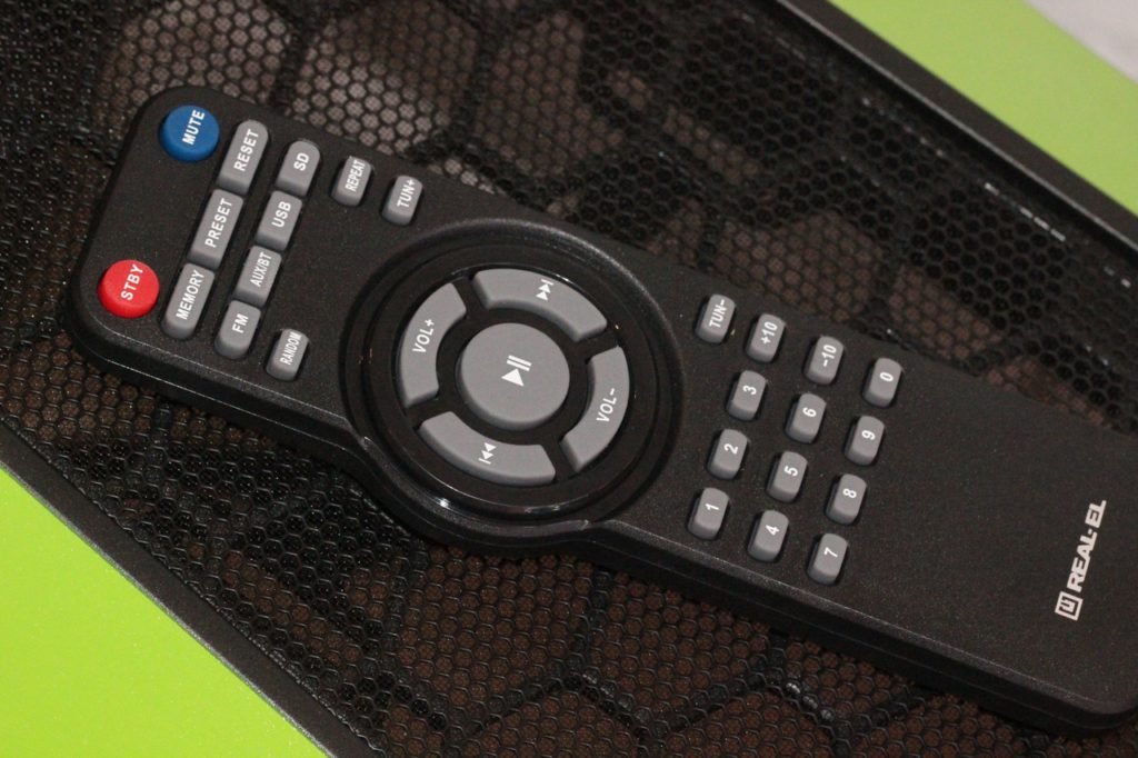 Для удобства пользователя в комплекте поставки предусмотрен пульт дистанционного управления, позволяющий полноценно работать с REAL-EL M-570, например, с того же дивана. О возможностях пульта очень хорошо расписано в руководстве пользователя, а потому дублировать эту информацию еще раз здесь не вижу никакого смысла.
