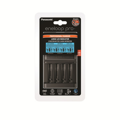 Panasonic BQ-CC65 — топовая модель новой линейки, которая отличается расширенным функционалом и улучшенными техническим характеристикам. Это первое зарядное устройство eneloop с большим LCD-экраном, током заряда 5V/1A и несколькими режимами, позволяющими проверить состояние и «возродить» аккумуляторы. Нажатие одной из трех кнопок — Refresh, Display и USB Out — вызывает соответствующую опцию. Например, последняя позволяет использовать устройство в качестве адаптера для зарядки портативной электроники.
