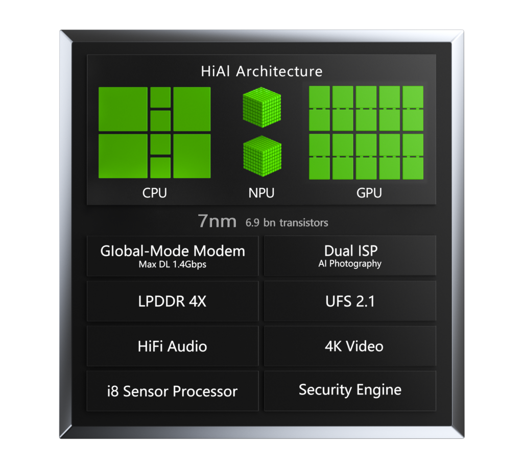 Будучи первым в мире коммерческим чипсетом, произведенным по 7-нанометровому процессу на мощностях Taiwan Semiconductor Manufacturer Company (TSMC), Kirin 980 отличается лучшей в своем классе производительностью и эффективностью. Он также имеет два нейроморфных модуля (NPU) для обработки задач, связанных с искусственным интеллектом.
