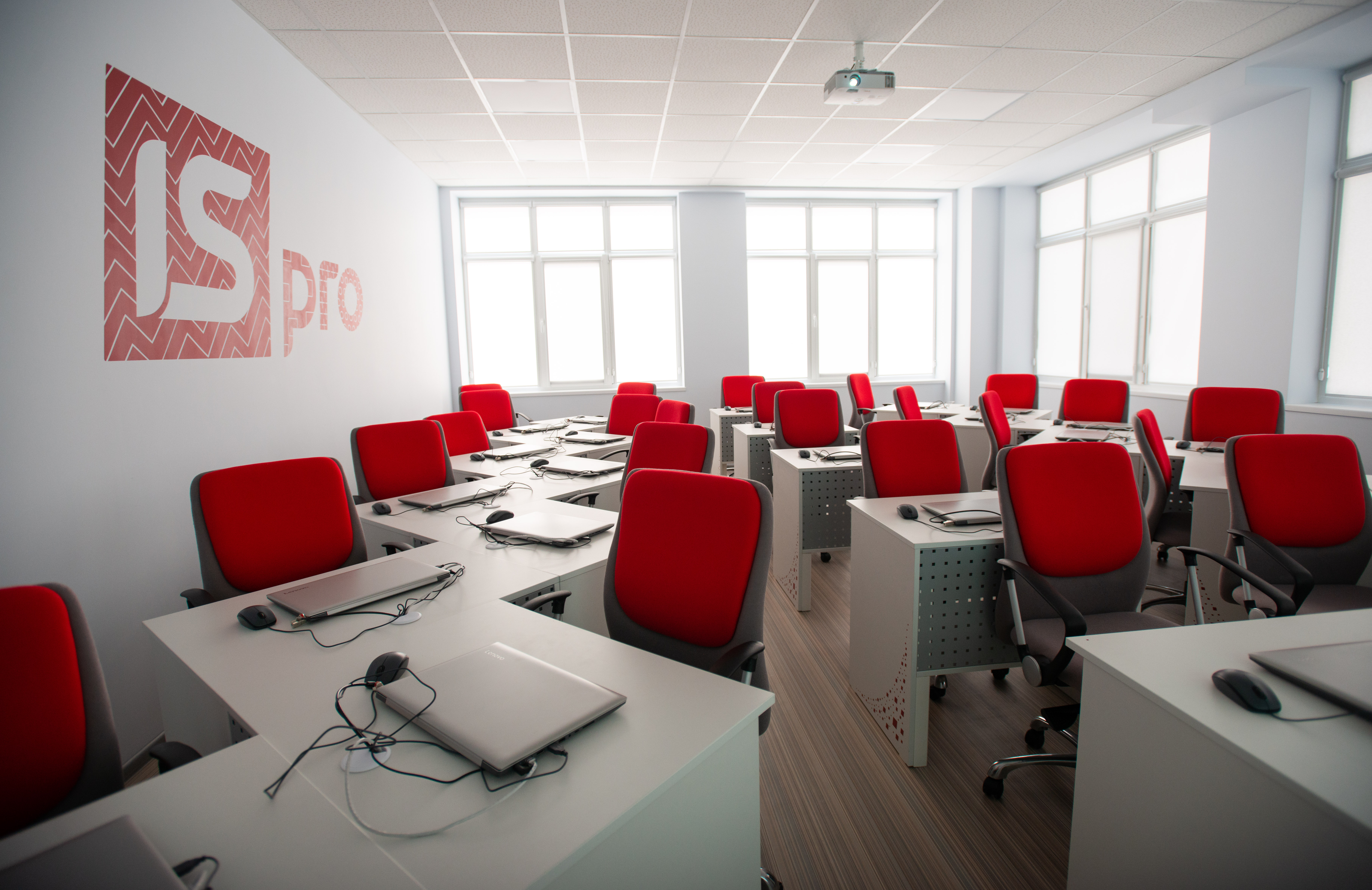 Кабинет для обучения оборудован эргономичными рабочими местами, проектором и ноутбуками. Также компания подарила свое программное обеспечение – систему ISpro.