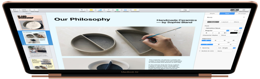 Новый MacBook Air получил безрамочный 13.3-дюймовый Retina-экран с 4 миллионами пикселей, поддерживающим на 48% больше цветов, и золотистый вариант алюминиевого корпуса. Ноутбук оснащен сенсором Touch ID с отдельным чипом T2, отвечающим за криптозащиту данных пользователя, клавиатурой типа Butterfly и увеличенным на 20% по сравнению с предшественником тачпадом Force Touch. В новом MacBook Air используется улучшенная система акустики, процессор Intel Core i5 8 поколения и новые SSD-накопители, работающие на 60% быстрее, чем раньше. MacBook Air оснащен двумя портами Thunderbolt 3 поколения, совместимыми с разъемами USB-C, использующимися для питания и подключения периферийных устройств. Этот сверхлегкий ноутбук с батареей, способной обеспечить 12 часов автономной работы, весит невероятные 910 граммов!