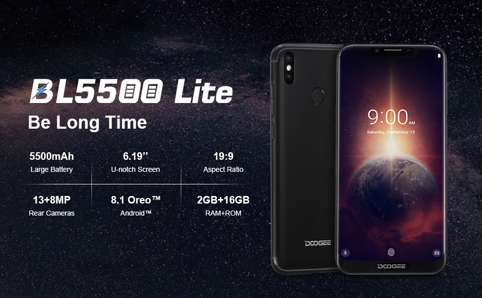 DOOGEE BL5500 Lite обладает встроенным аккумулятором, емкость которого 5500 мАч.