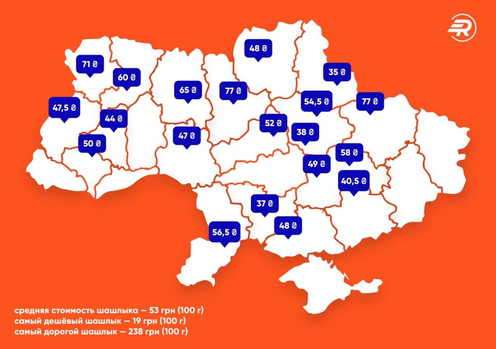Также, согласно рейтингу, самым дешевым шашлыком в Украине можно полакомиться в Запорожье. В одном из местных заведений его стоимость составляет всего 19 грн за 100 г. А вот самый дорогой шашлык с доставкой можно заказать в Днепре за 238 грн. В целом же средняя стоимость шашлыка по Украине составляет 53 грн.