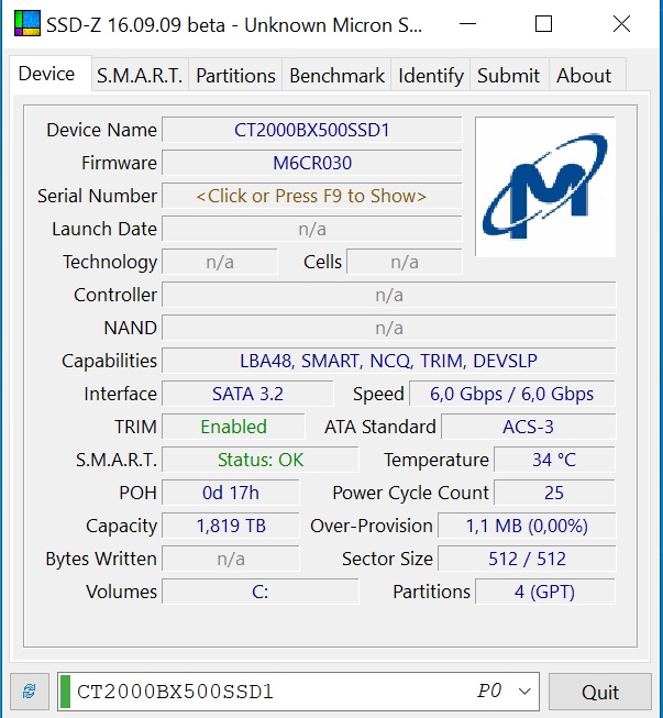 При помощи той же программы CrystalDiskInfo, а также утилиты SSD-Z, мы узнали за версию прошивки носителя, а также ряд его «железных» составляющих.