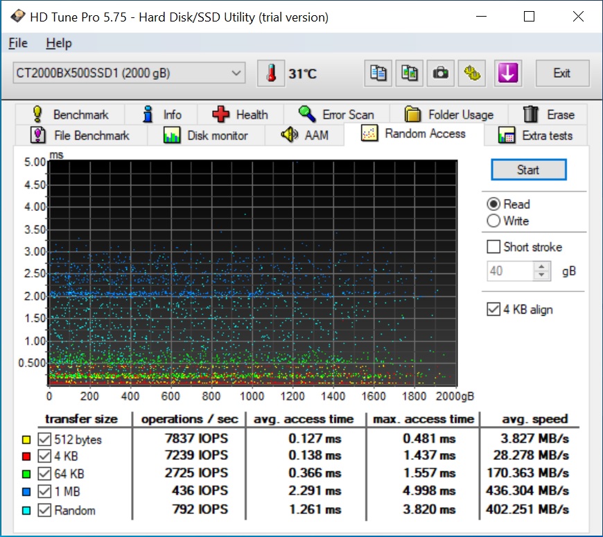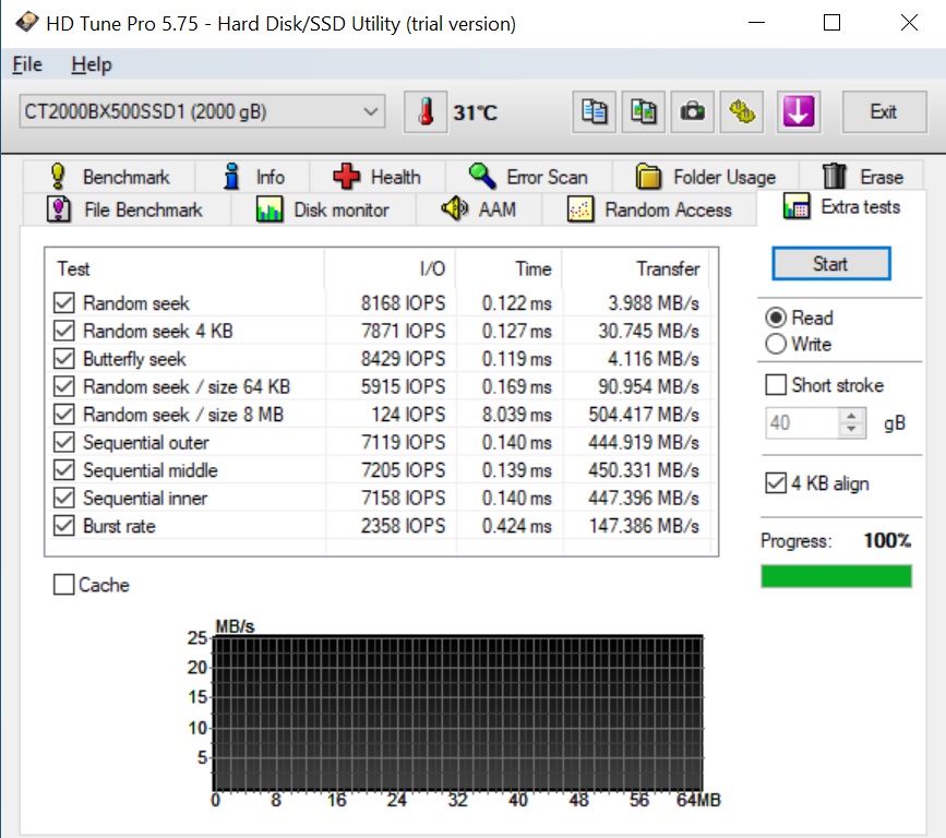 Отдельно ряд необходимых тестов провели программой HD Tune PRO. Полученные результаты и в этом случае оказались весьма удовлетворительны.