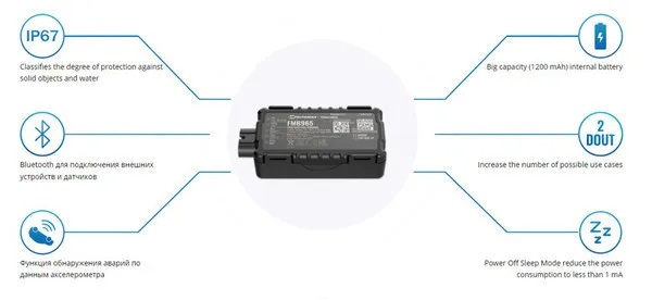Этот режим в совокупности с компактным водонепроницаемым корпусом IP67 делает FMB965 идеальным для мониторинга двухколесной техники. Такой вариант корпуса позволяет использовать его также для контроля скутеров, квадроциклов, прицепов, моторных лодок, водных мотоциклов, судов на воздушной подушке, снегоходов и т.д. Как видите, спектр применения очень широк.