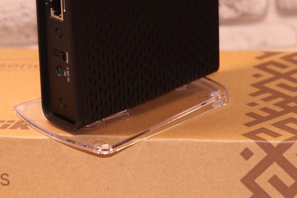 Выше мы уже упоминали подставку/кронштейн, на которой пользователь может разместить MikroTik hAP ac3 LTE6 kit (RBD53GR-5HacD2HnD&R11e-LTE6), исключая классическое расположение на столе. Так, при помощи этой подставки устройство может быть расположено горизонтально на полу, столе или другой поверхности. Также возможна вертикальная установка на тех же поверхностях или горизонтальная на стенке/потолке. Однако и это еще не все. Использование данной подставки позволяет также закрепить девайс на стенке/потолке вертикально. Как видим, учтены едва ли не все возможные варианты и пользователю необходимо лишь выбрать, какой из них для него наиболее, скажем так, интересен.