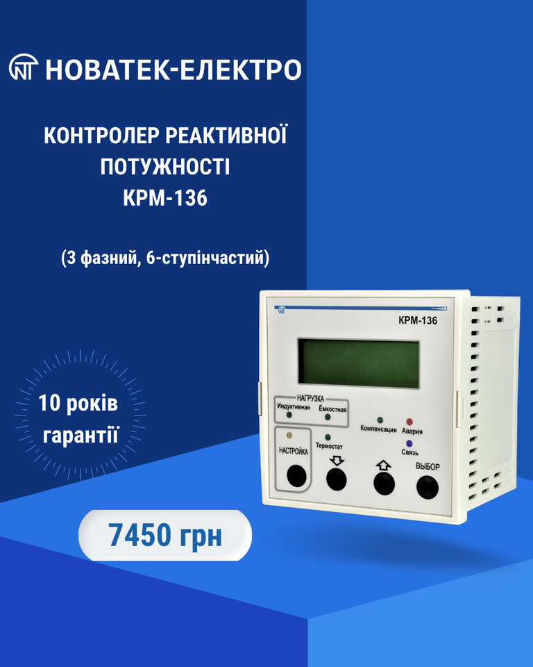 Основне призначення КРМ-136 — вимірювання параметрів трифазної мережі та управління конденсаторною установкою компенсації реактивної потужності.