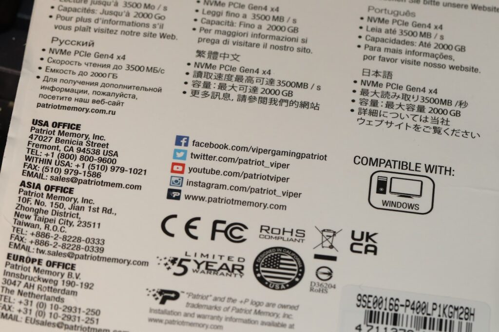 До всього сказаного варто додати підтримку технології SmartECC, теплове дроселювання та наскрізний захист передачі даних. Ще одна варта уваги особливість Patriot P400 Lite 1TB – наднизьке енергоспоживання.