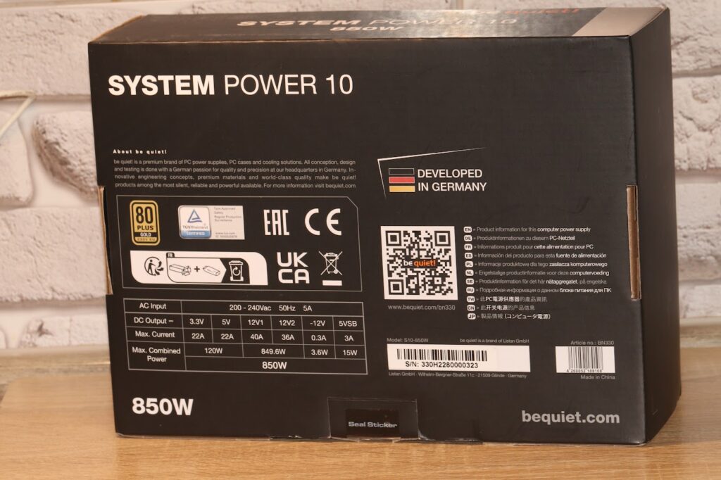 Щодо коробки, то це та «річ», яка відправляється в утилізацію відразу ж (чи майже відразу) після розпакування виробу. Та навіть якщо упаковку від be quiet! SYSTEM POWER 10 850W чекає аналогічна доля, попередньо я раджу витратити деякий час на вивчення даних зі стінок, адже на них чимала кількість різноманітної інформації щодо можливостей та особливостей моделі, а корисних даних, як відомо, забагато не буває.