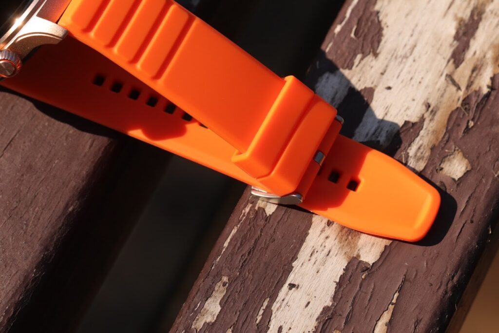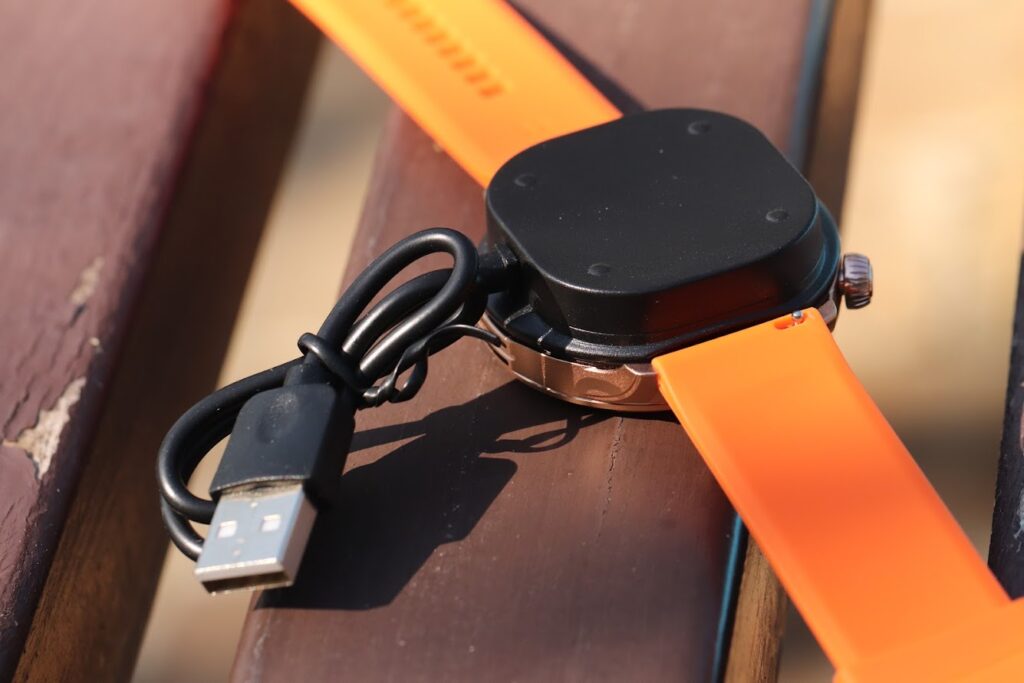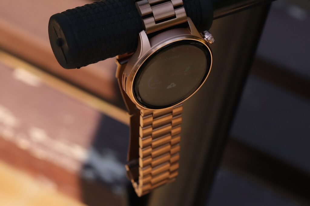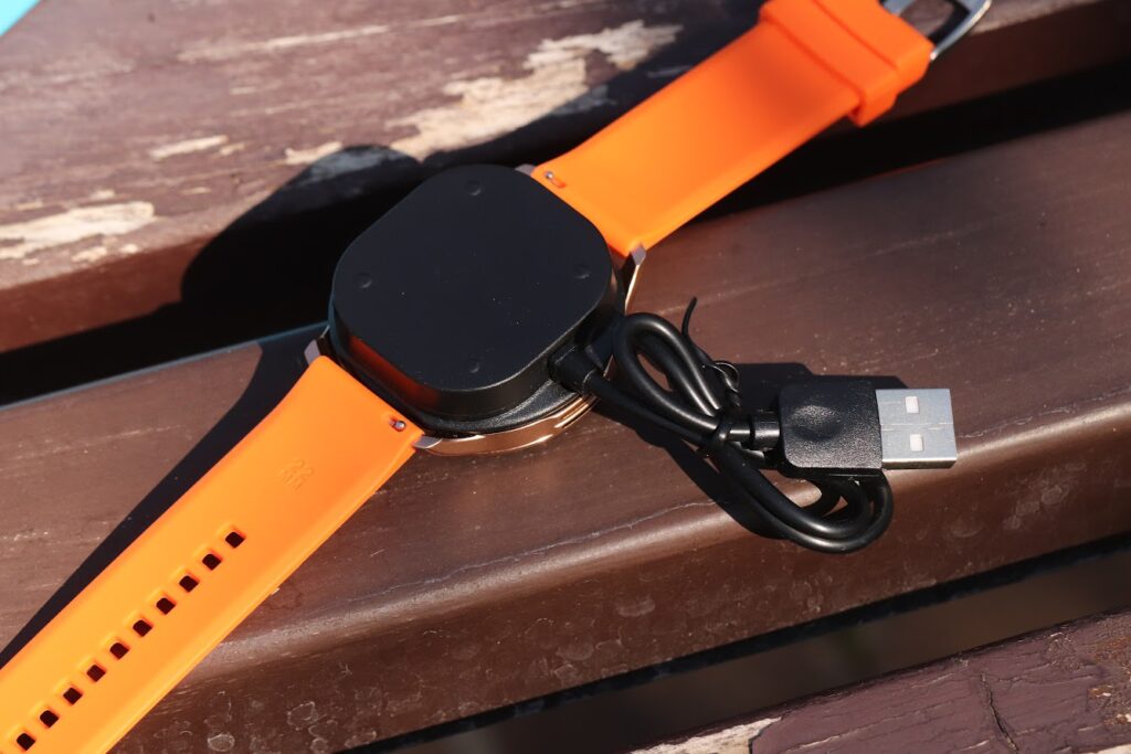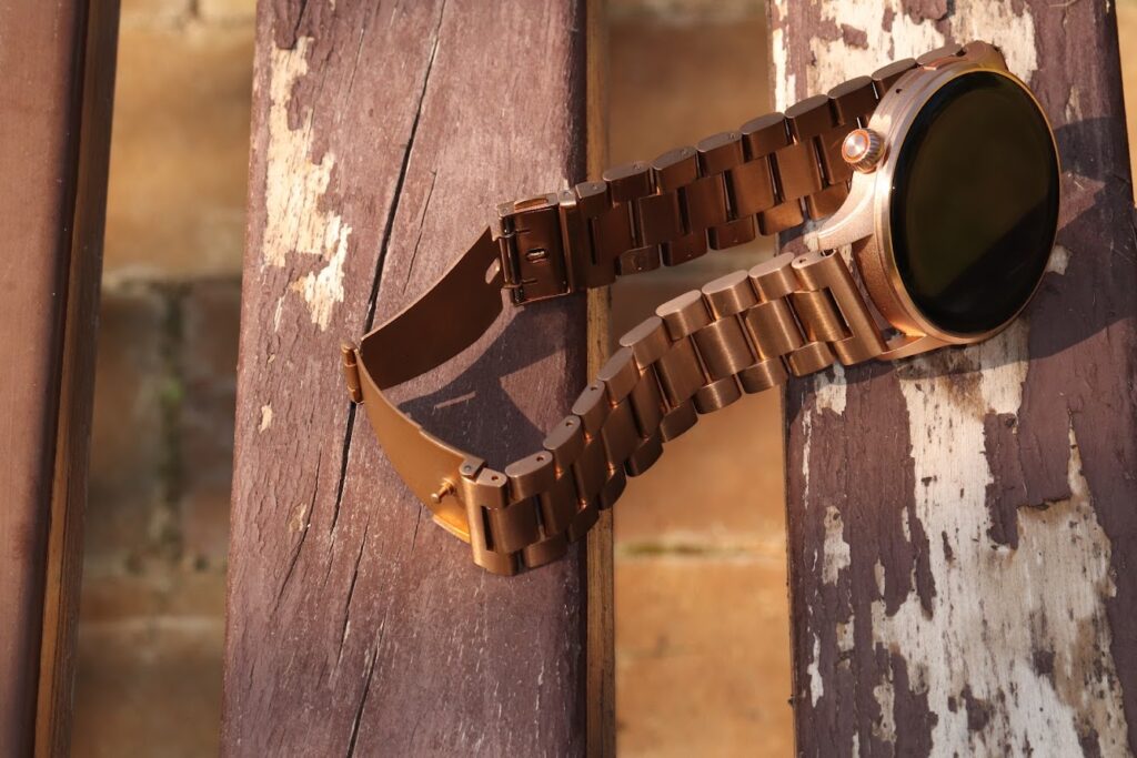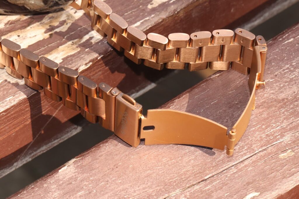Подарунком до кожного Gelius Amazwatch GT3 GP-SW010 є ремінець. У випадку нашої моделі в «золотому» кольорі він помаранчевий. Якщо ж будете купувати чорну версію годинника або ж сіру, там колір ремінця буде відповідним. У тому випадку, якщо помаранчевий колір – не ваш варіант, але годинник хочеться саме «золотий», на сайті бренду можна пошукати інші кольори стандартного 22-милліметрового ремінця. Ну і браслет. Взагалі, на моїй пам’яті це перший годинник такого класу саме з браслетом. З іміджевої точки зору – рішення бездоганне. Стосовно практичної сторони питання, про це дещо згодом.