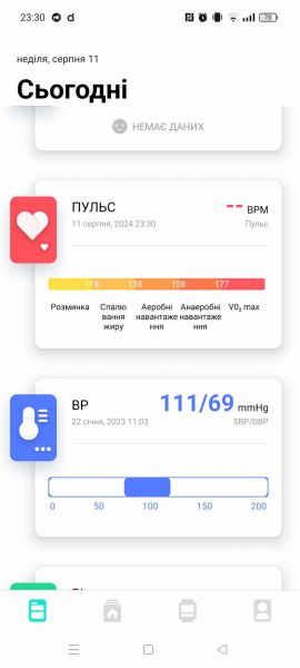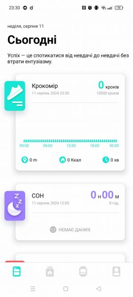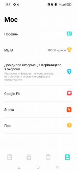 Саме ж по собі меню – це чотири розділи: «Сьогодні», «Клас/Тренування», пункт налаштувань, в тому числі сповіщень (які ми всі такі любимо) і четвертий – «Моє».