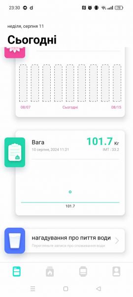 Перший зі згаданих – це свого роду реєстр досягнень в ходьбі, бігу та ін. фізичних навантаженнях. Тут ви можете зберігати дані не лише за день, але й за тиждень і навіть місяць. Крім того, окремим пунктом передбачена можливість встановити нагадування за необхідність пиття води. Погодьтесь – зручно!