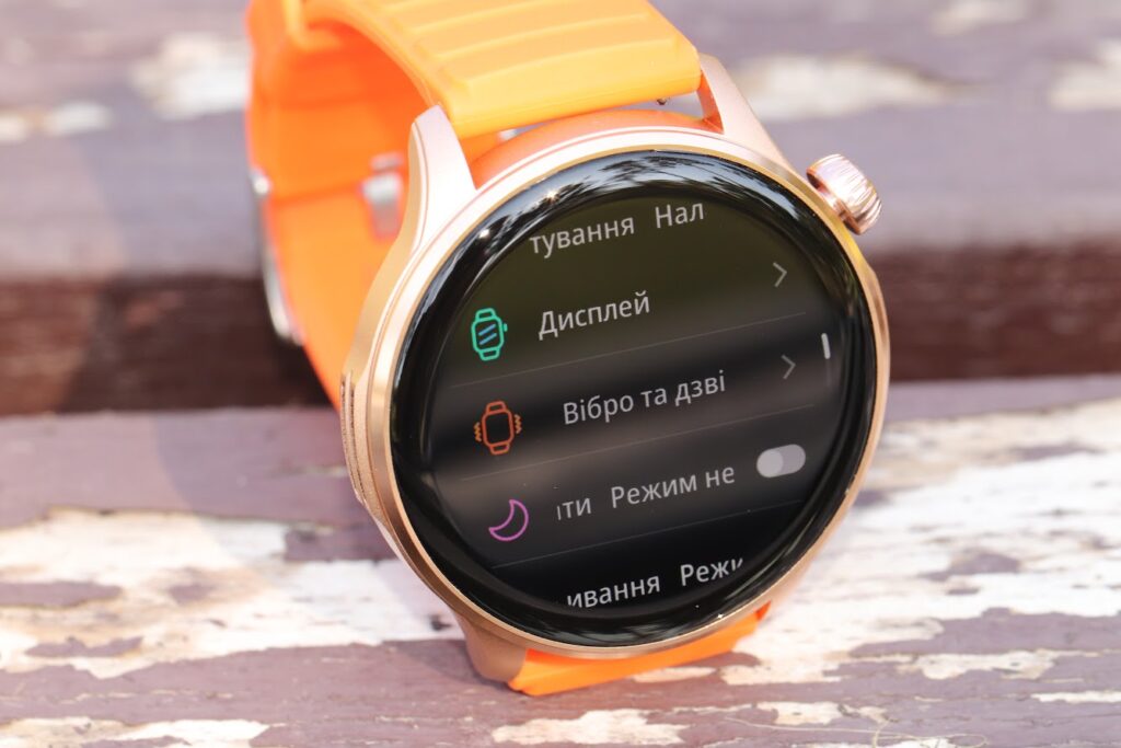 Одна з примітних особливостей Amazwatch GT3 GP-SW010 — великий 1,43-дюймовий AMOLED-дисплей. Роздільна здатність останнього – 466х466 пікселів, а тому навіть мови про можливе зерно на екрані не може бути; картинка м’яка, без спотворень і тому подібних «речей».