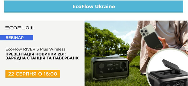 Тож, у новому вебінарі «EcoFlow RIVER 3 Plus Wireless. Презентація новинки 2в1: зарядна станція та павербанк» розповідаємо про усі технічні інсайти та переваги новинки.